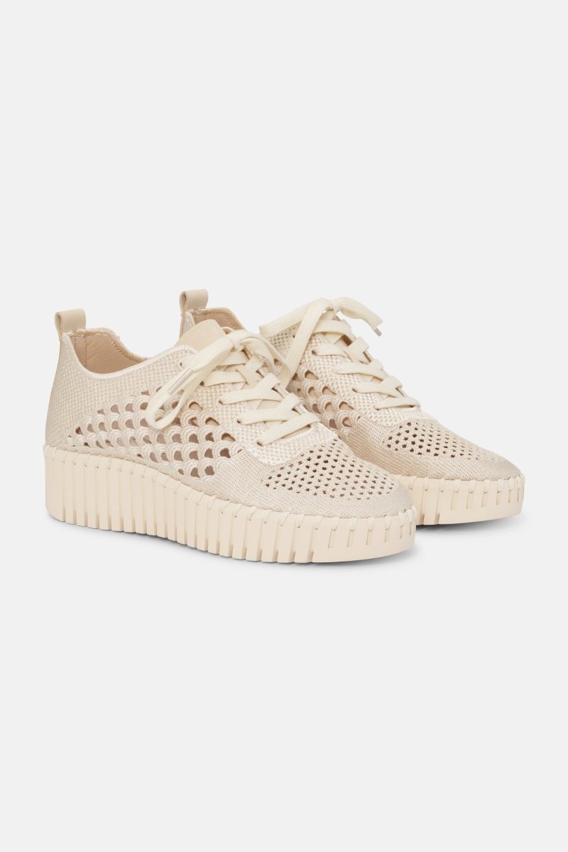 Présentation du nouveau développement Tulip sur une semelle compensée de soutien. La semelle extérieure flexible est cousue avec du fil recyclé et est complètement sans colle. À l'intérieur, une semelle douce offre un rembourrage et un soutien supplémentaires pour un confort tout au long de la journée. Le dessus présente un élégant motif de tulipe brodé, ajoutant respirabilité et style. Avec des lacets pour un enfilage facile, cette chaussure est parfaite pour toutes les occasions.