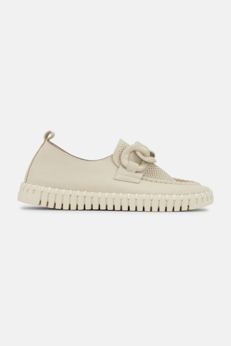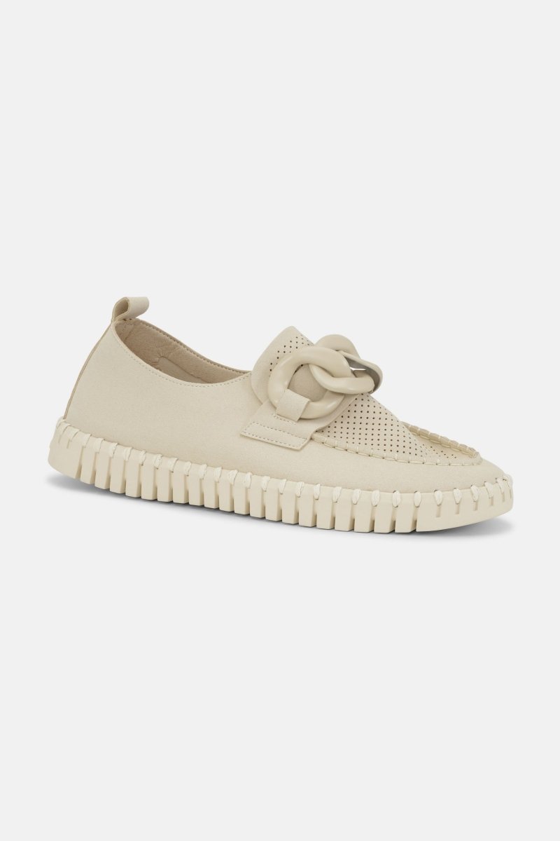 De loafers TULIP3884 van Ilse Jacobsen is stijlvol en tijdloos. Deze schoen combineert het iconische Tulip ontwerp met een moderne loafer-look. De ton-sur-ton gesp aan de voorkant geeft de schoen net dat beetje extra flair. Gemaakt van gerecycled microvezel, met een flexibele Tulip zool en bijpassend gerecycled stiksel. De gewatteerde binnenzool biedt ondersteuning en zorgt ervoor dat je ze de hele dag door met plezier draagt. Perfect onder een nette broek of een luchtige jurk.