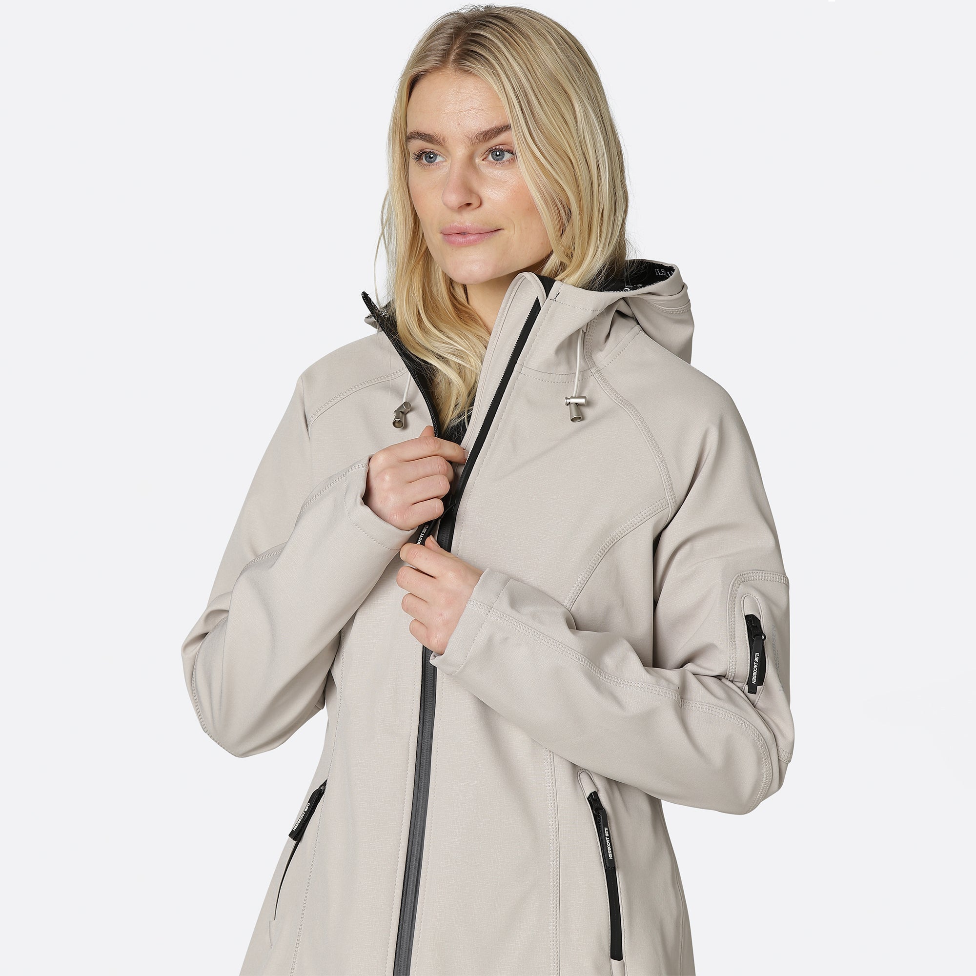 Le imperméable en softshell RAIN37 à manches raglan d'Ilse Jacobsen offre une coupe confortable avec une taille légèrement cintrée, créant ainsi une silhouette féminine. Le matériau respirant et déperlant permet de se déplacer librement sous la pluie sans transpirer. La veste est doublée en polaire douce et est équipée d'une fermeture à glissière imperméable à double sens pouvant être ouverte à la fois par le haut et par le bas ; idéale pour une balade à vélo. Le revêtement ecorepel® crée un bouclier invisible vous protégeant contre l'eau et la saleté. La veste est dotée d'une capuche avec cordon de serrage, de deux poches zippées sur le devant et d'une sur le bras gauche. Un imperméable parfait pour toutes les averses !